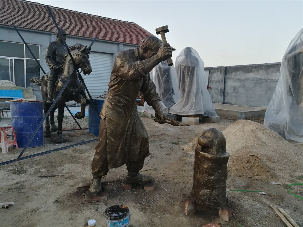 雕塑說明:騎馬將軍雕塑高2.6米,成品為玻璃鋼工藝制作。該組雕塑是雕塑公司拋開市場環(huán)境,真正藝術(shù)化創(chuàng)作的珍貴作品。打鐵匠雕塑,高1.9米,同樣采用玻璃鋼工藝制作。兩組雕塑的泥塑均有雕塑師張凱完成。未經(jīng)允許,嚴(yán)禁把本相冊圖片用于商業(yè)用途。